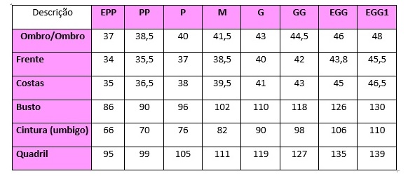 As medidas se referem ao corpo e não à peça de roupa. Ao medir, a fita deve estar confortável.