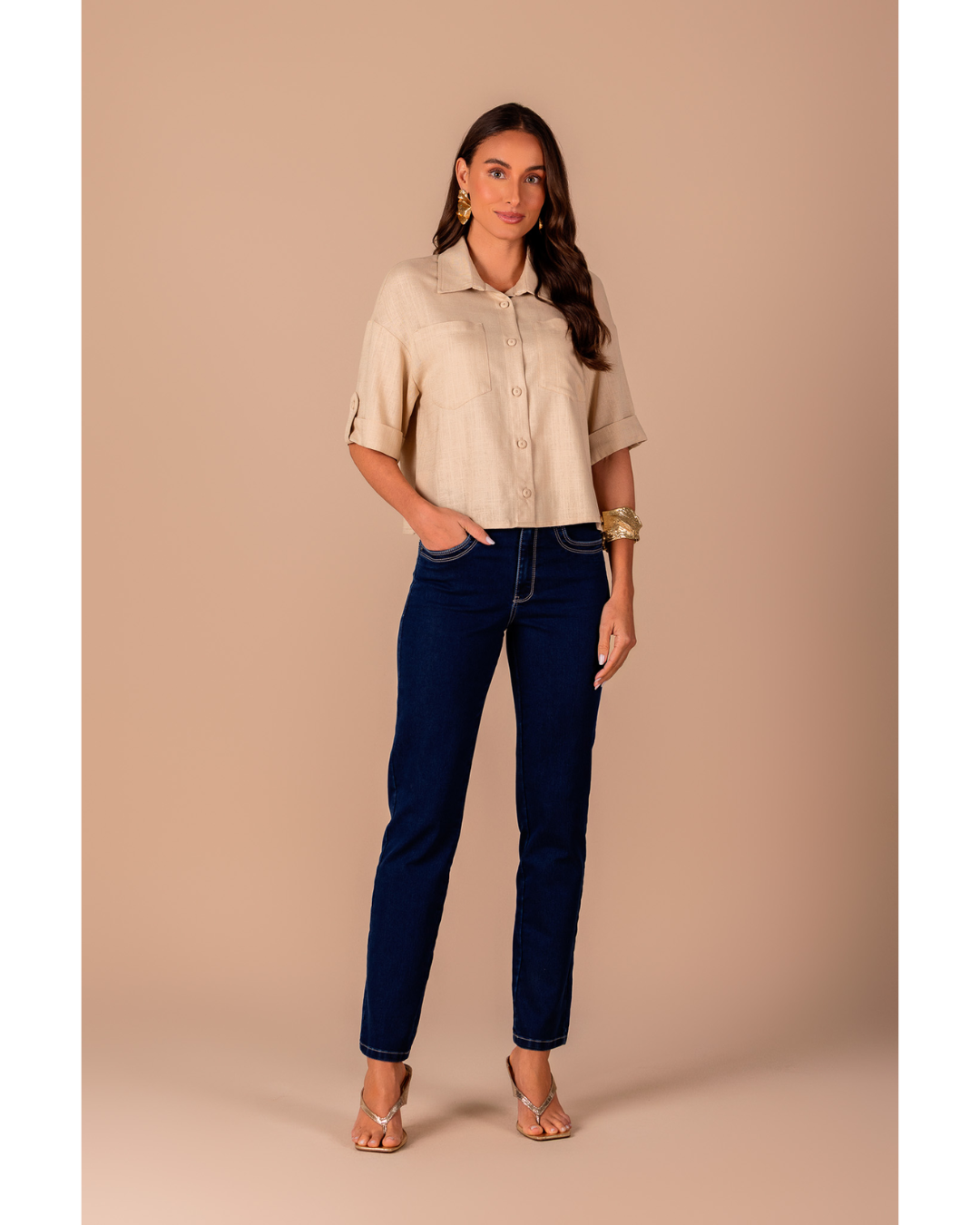 calça jeans reta cintura intermediária com pespontos se ajusta naturalmente ao corpo jeans estruturado pespontos use para um look casual.