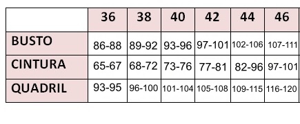 As medidas se referem ao corpo e não à peça de roupa. Ao medir, a fita deve estar confortável.