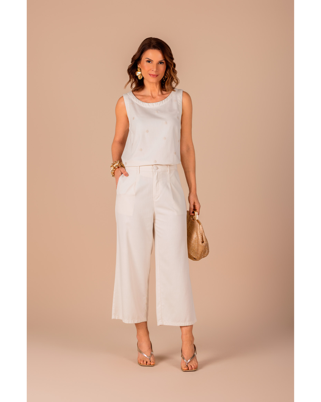 A blusa regata da Eliana Maza Moda é a peça ideal para quem busca elegância e leveza no dia a dia. Confeccionada em tecido leve e confortável, ela apresenta delicados poás bordados em tom suave, trazendo um toque de charme e sofisticação ao visual. O corte reto e o decote arredondado valorizam o colo de forma sutil, garantindo um caimento impecável e atemporal.